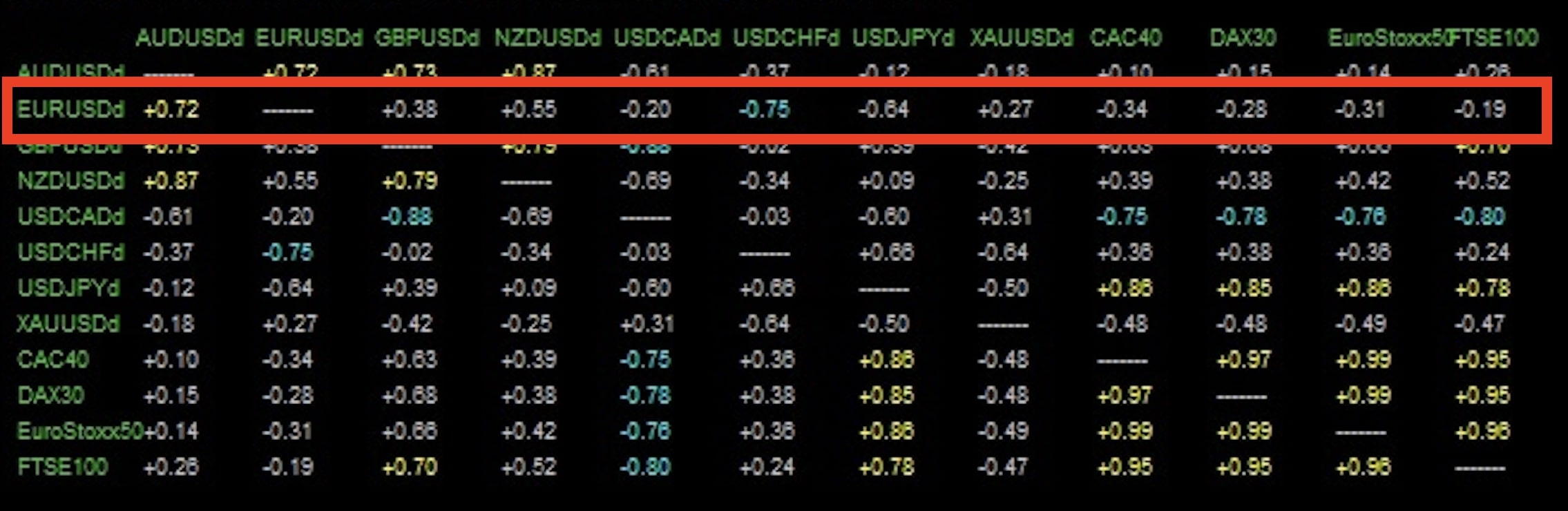 корреляции для валютной пары EUR/USD