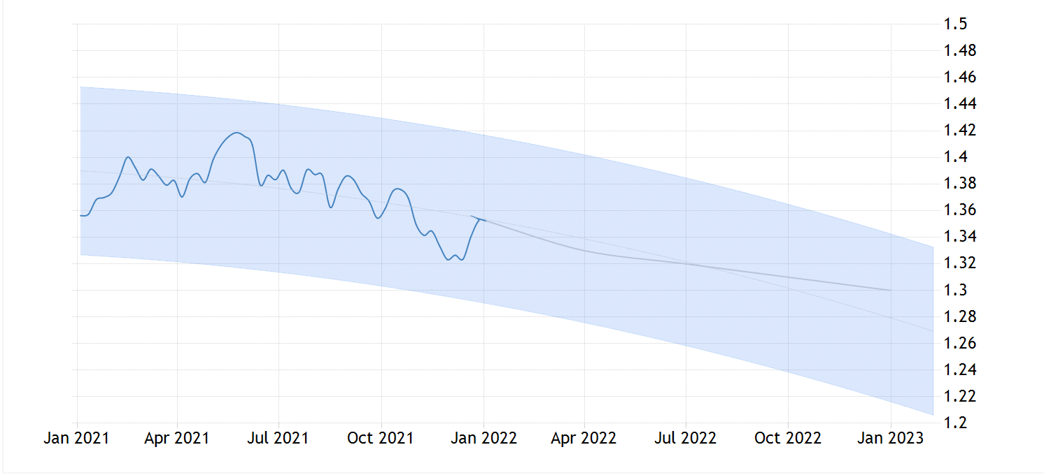 Прогноз динамики котировок валютной пары GBPUSD с января 2022 г. по январь 2023 г. Дата обращения: 06.01.2022. Источник: tradingeconomics.com.