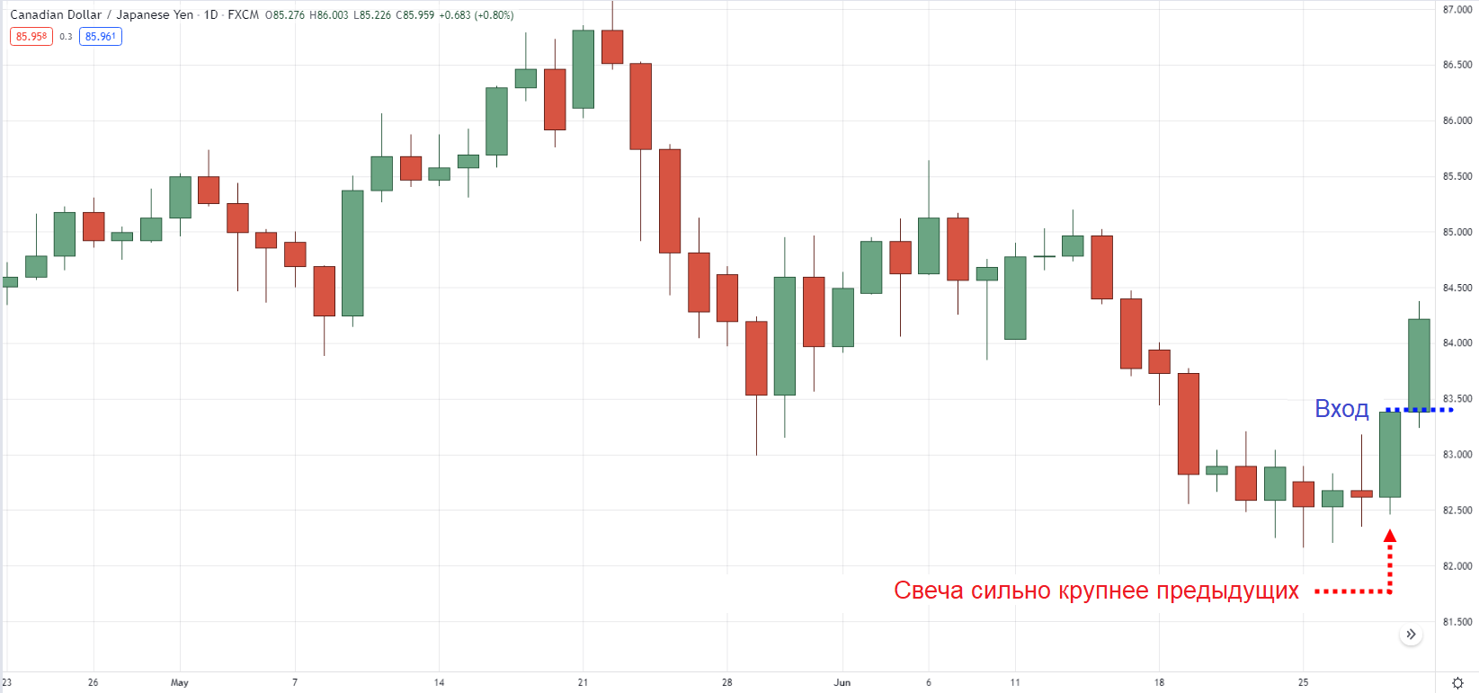 Вам нужен ориентир — свечи с крупными телами в качестве подтверждения для входа в сделку.