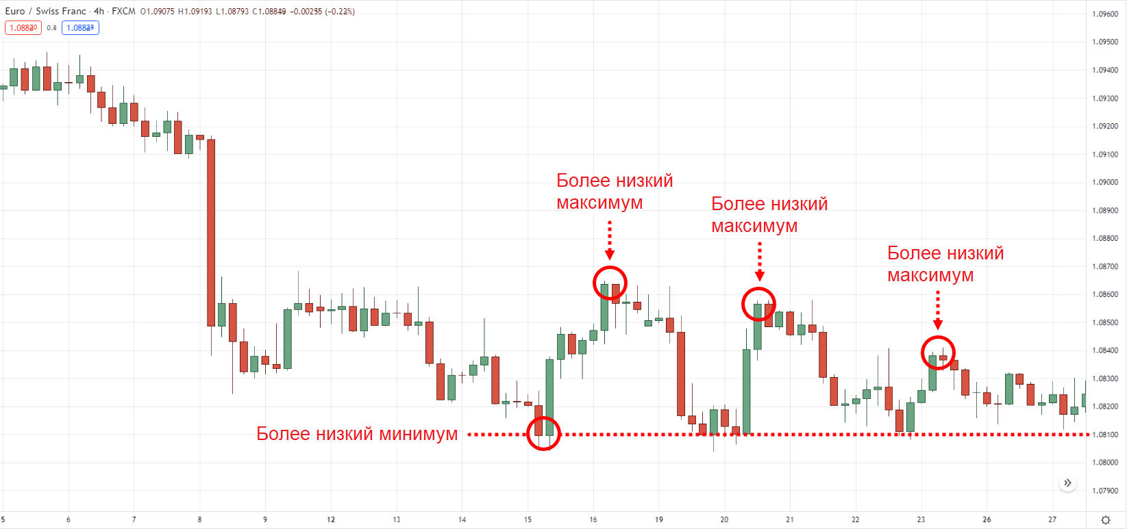 Price Action: более низкие минимальные и более низкие максимальные значения в трейдинге
