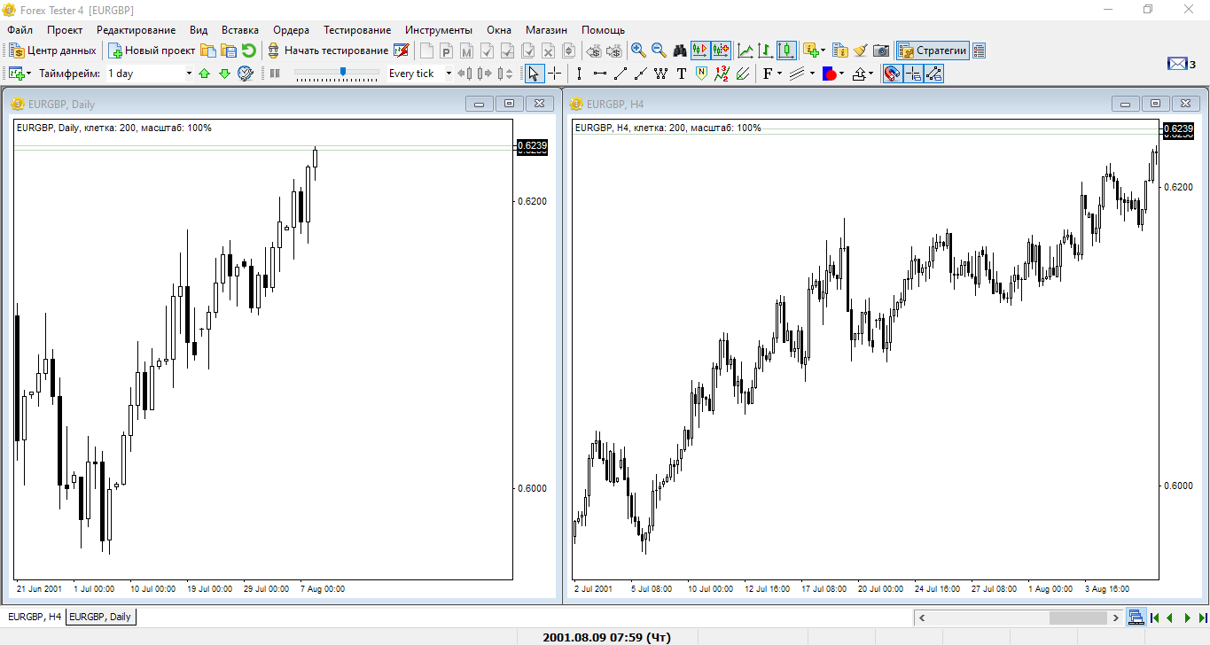 FX Tester — тренажер для торговли. В него можно загрузить исторические данные по валютам, акциям и криптовалютам и отрабатывать графические закономерности на истории.