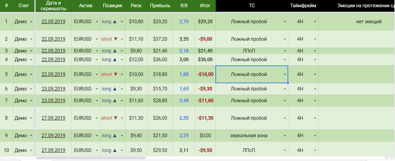 Чтобы сделать обучение полноценным, мы советуем вам завести свой журнал сделок. Вы будете заносить в него детальную информацию о каждой сделке: