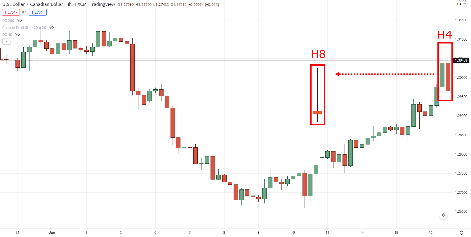 Итак, например, вы смотрите на этот график на 4-часовом таймфрейме: