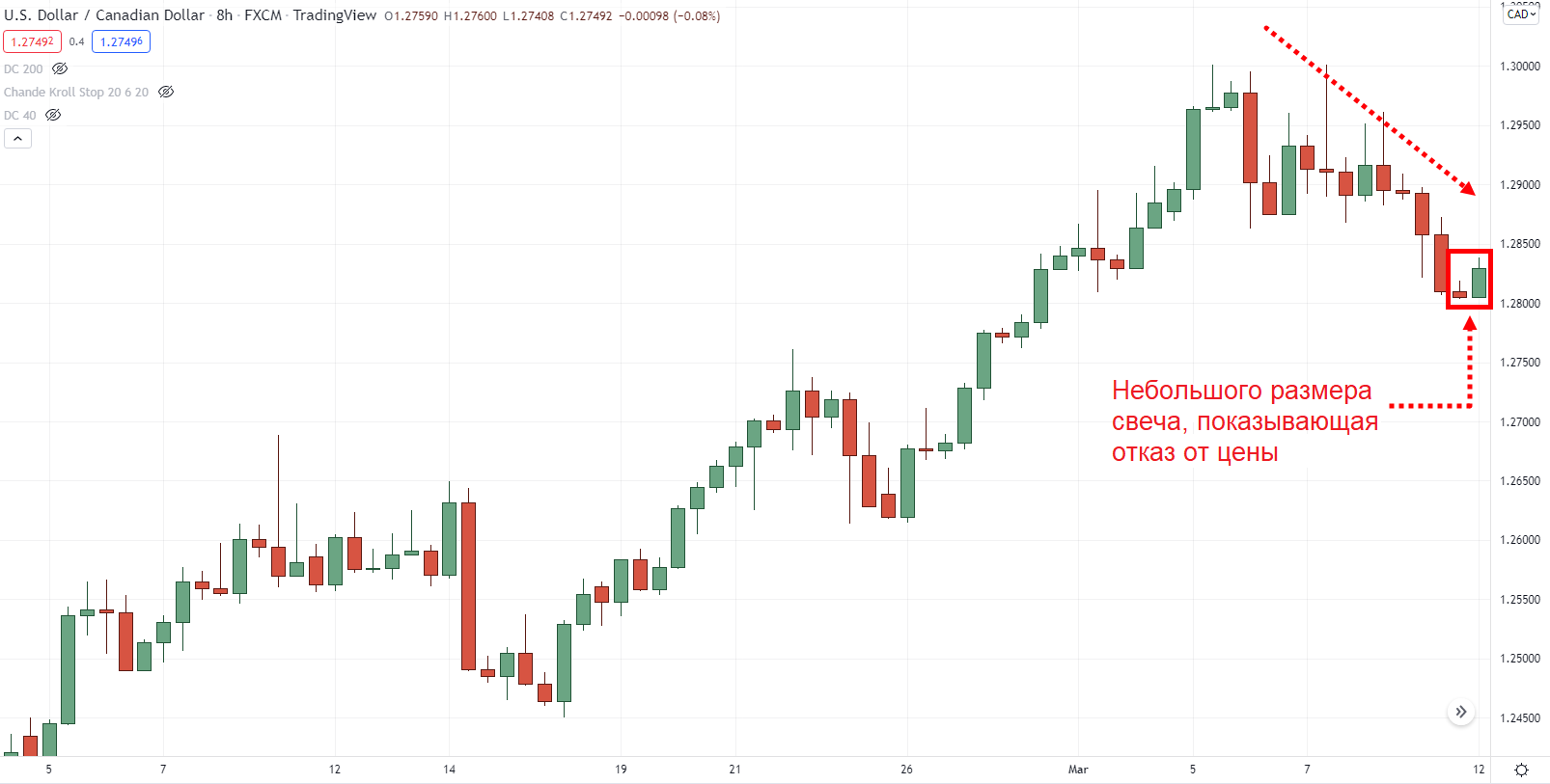 Теперь посмотрите на самую последнюю свечу: