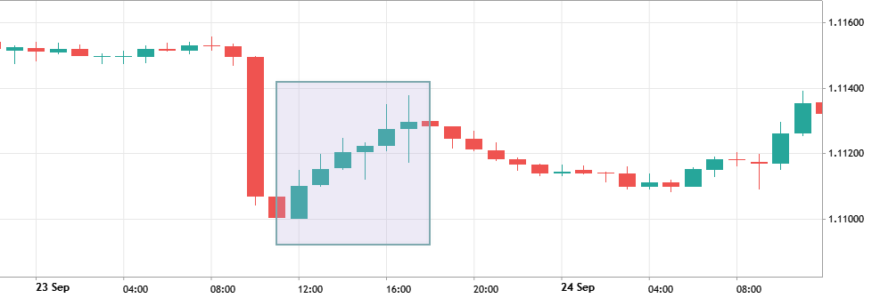 Ну а посмотрев на то, как соотносятся друг с другом находящиеся рядом свечи можно увидеть и сам тренд. Вот сразу несколько примеров только на одном изображении.