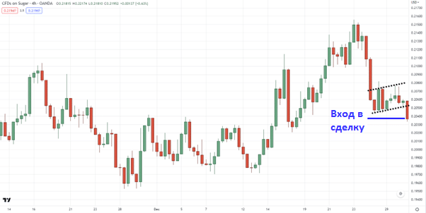 3. Ждем паттерн флага и заходим по нему в сделку.