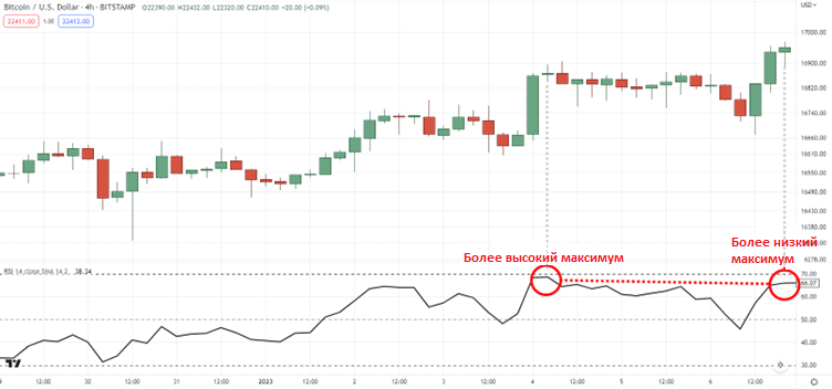 На графике можно наблюдать медвежью разворотную дивергенцию.