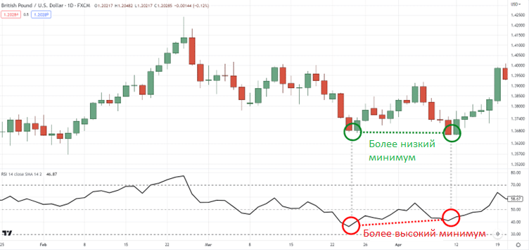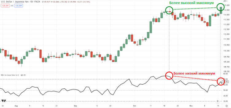 разница между направлением цены и действием индикатора