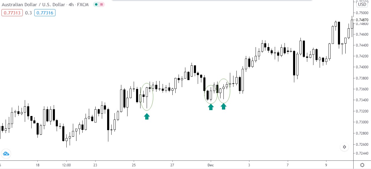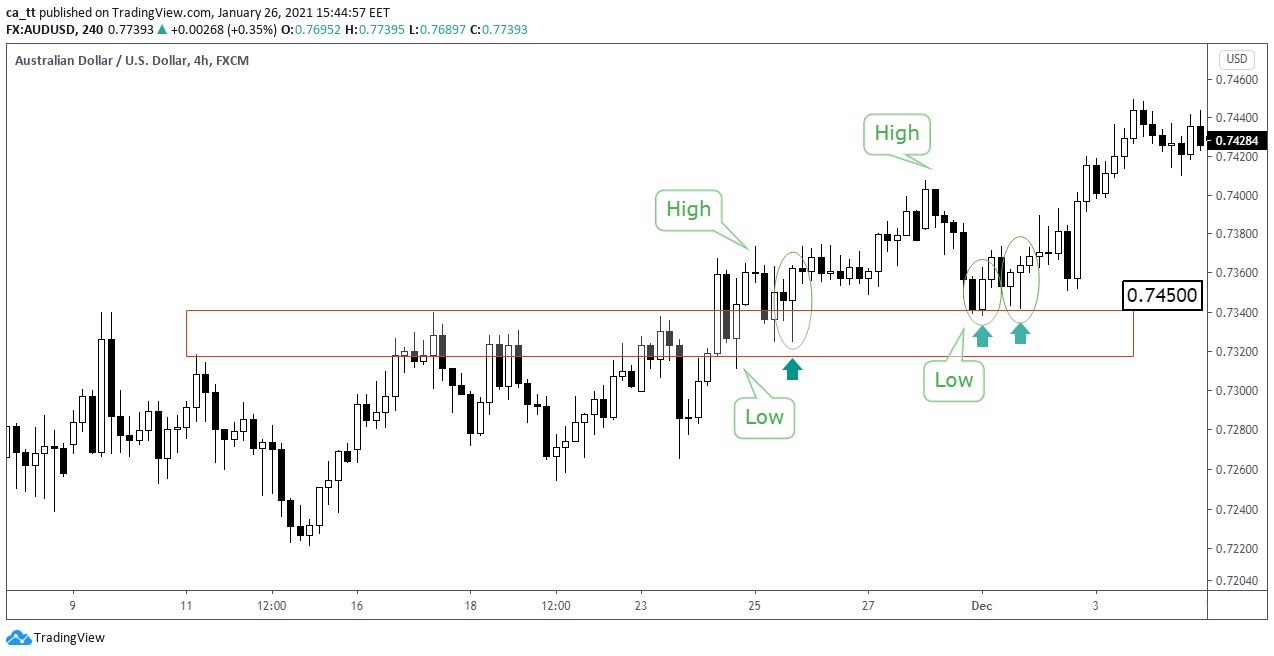 Поработаем с AUD/USD на 4-часовом фрейме.