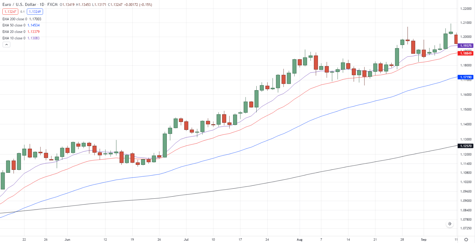 Краткосрочный период EMA в сильном тренде на дневном таймфрейме: