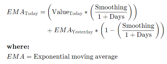 • По сравнению с простой скользящей средней расчет EMA более реактивный и имеет больший вес для текущей цены.