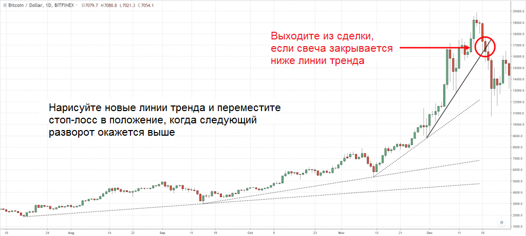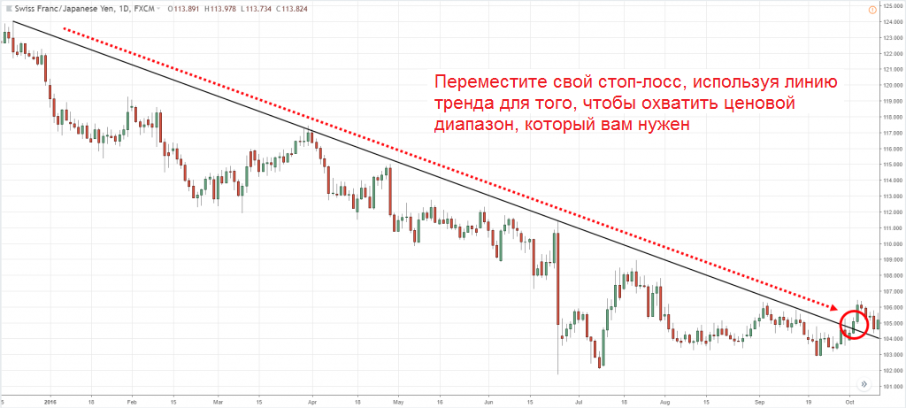 Можно использовать линию тренда, чтобы вовремя переместить свой стоп-лосс.