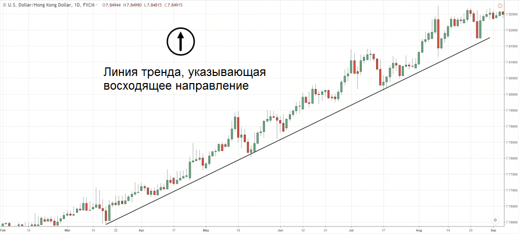 Если линия нарисована от левого нижнего угла к правому верхнему, то рынок находится в восходящем тренде, и наоборот.