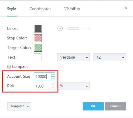 Инструмент риск-вознаграждение показывает, какой размер позиции какому размеру счета соответствует.