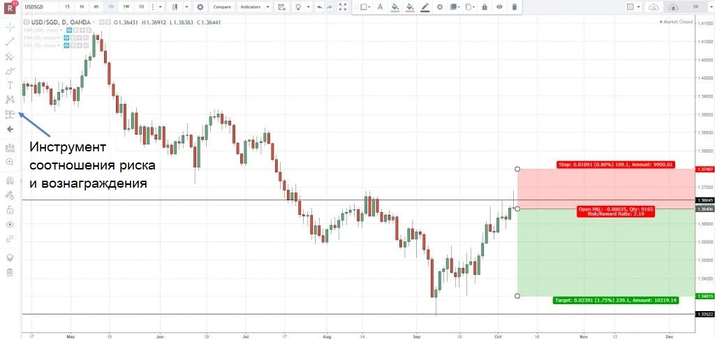 Пропорция (коэффициент доходности за риск) оценивает потенциальную прибыль (или доход) на каждую денежную единицу, участвующую в сделке.