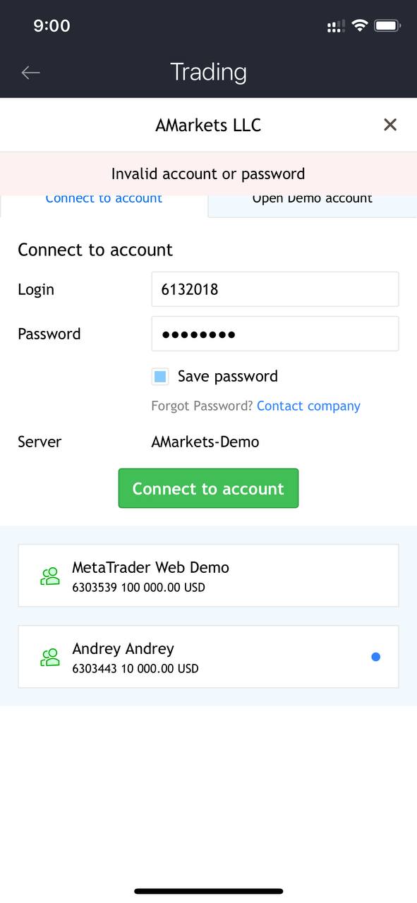 2. Счет уже неактивен. Если вы не используете демосчет в течение длительного времени, он автоматически перемещается в архив. Вы можете подключить новый счет, перейдя в раздел «Торговые счета» через иконку «Настройки» в нижней панели экрана.