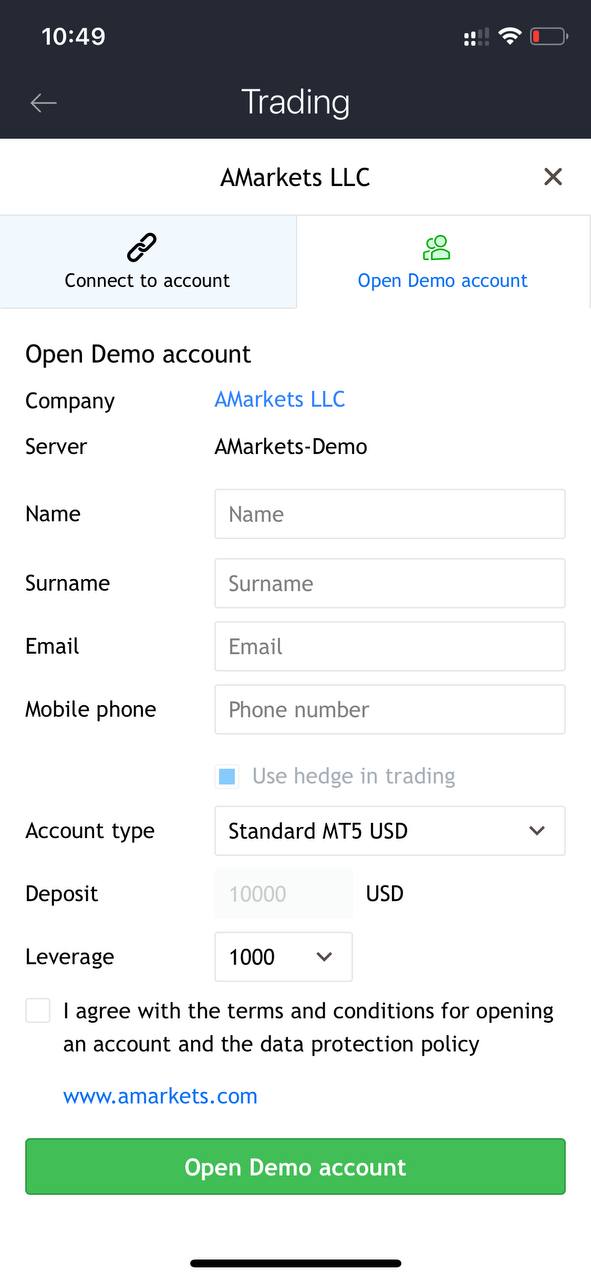 демо счет в AMarkets