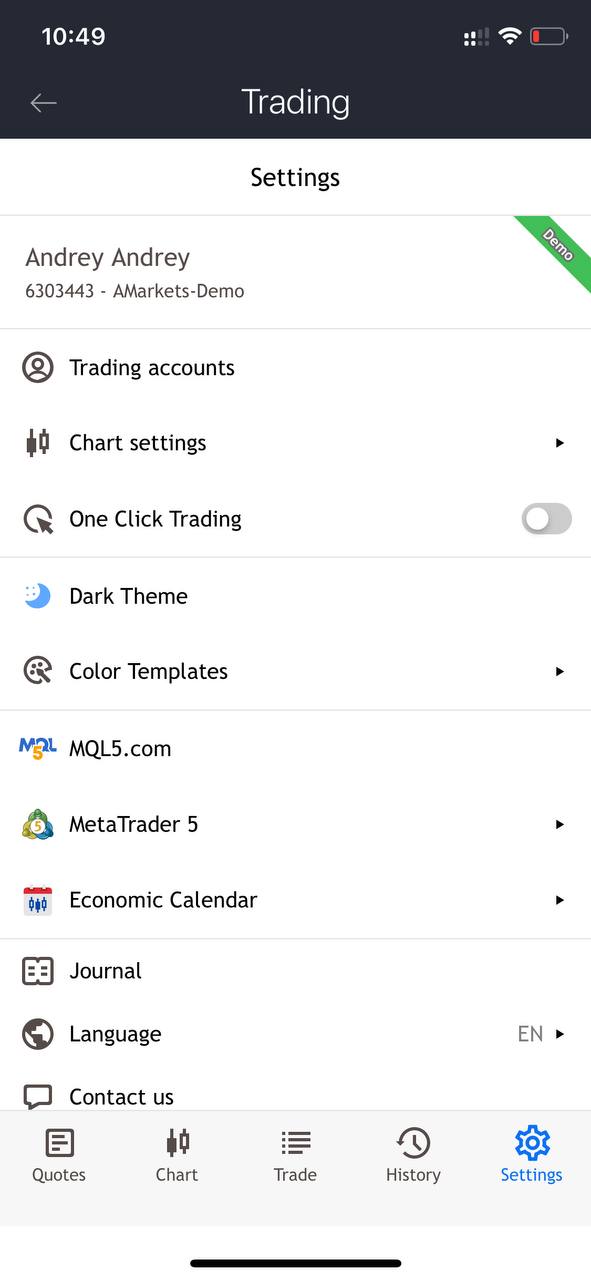 Не переживайте, если после обновления приложения вы заметили, что интерфейс стал другим. Следуйте инструкции, представленной ниже, чтобы вернуться в свой активный демосчет.